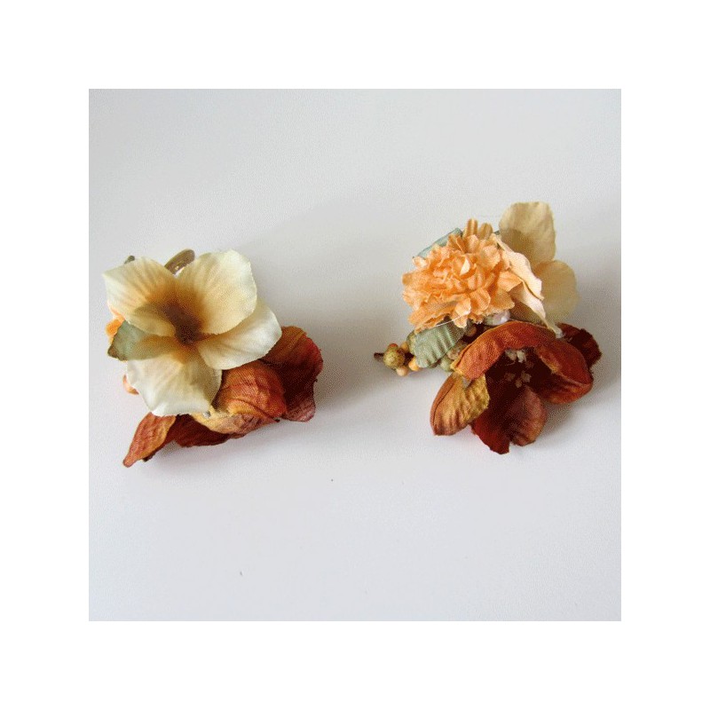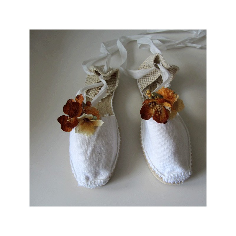 Dos Clips para zapatos o alpargatas en tostado, beige y tacaco para niñas de arras.