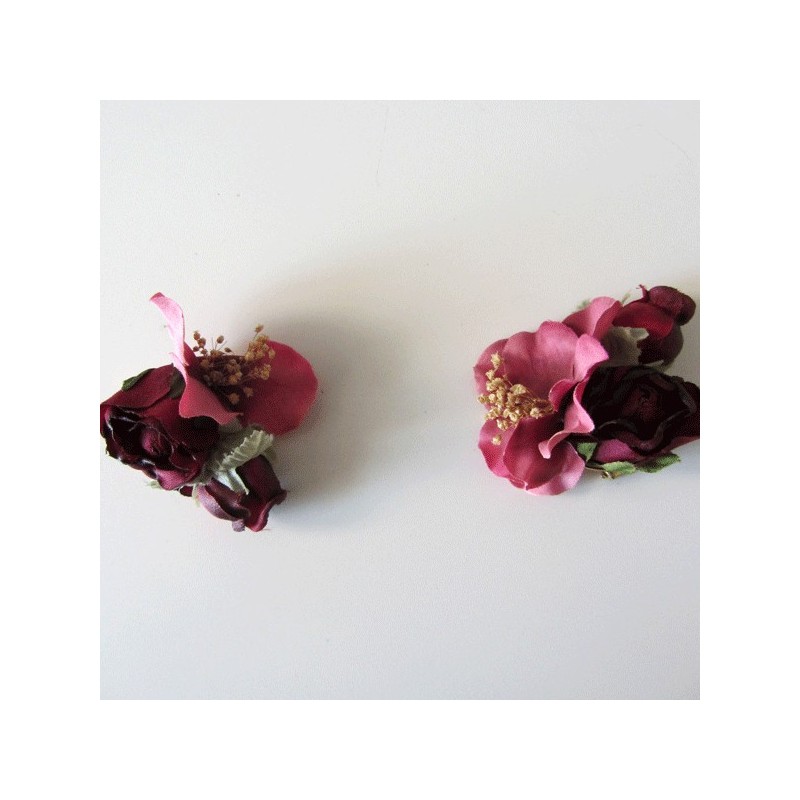 Dos Clips para zapatos o alpargatas en granate para niñas de arras.