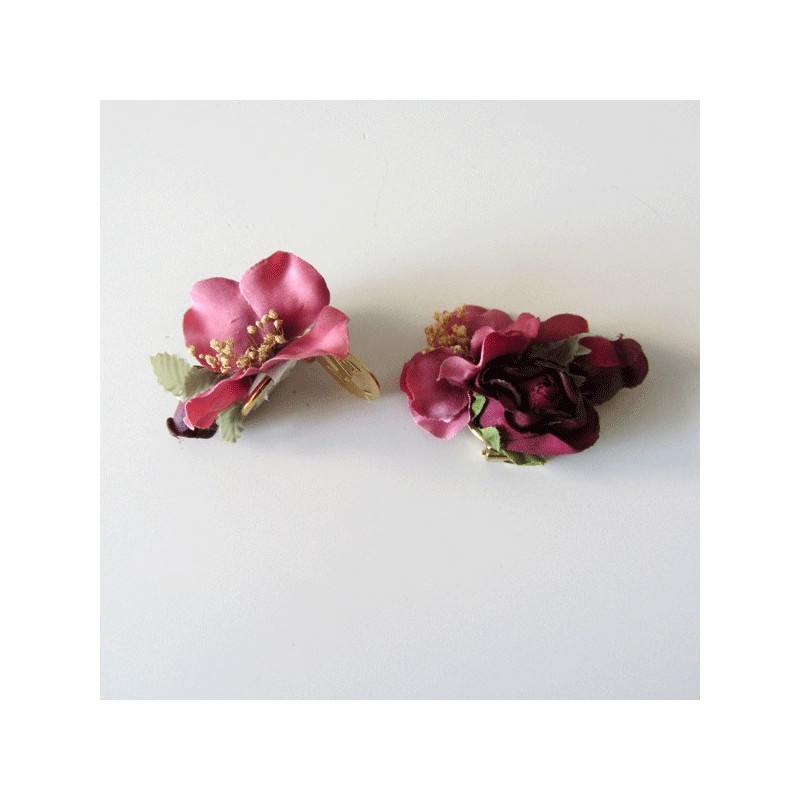 Conjunto de dos clips para zapatos o alpargatas de color granate.