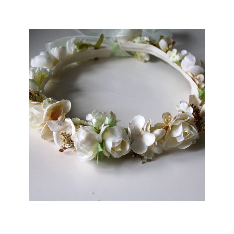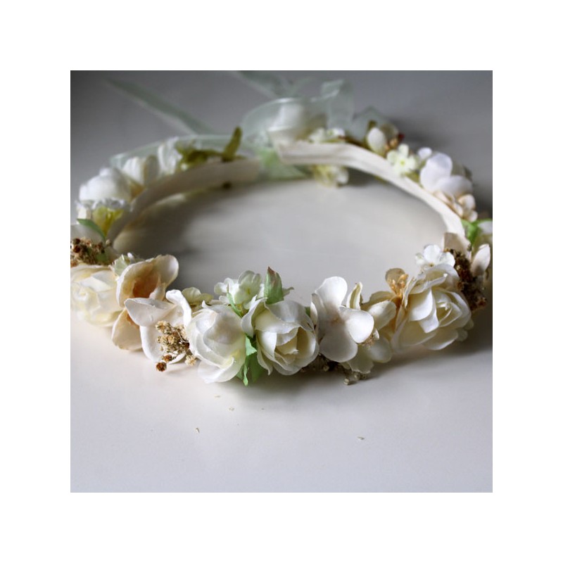 Corona de flores en tonos beige marfil y tostado  para niñas de Arras y primera comunion.