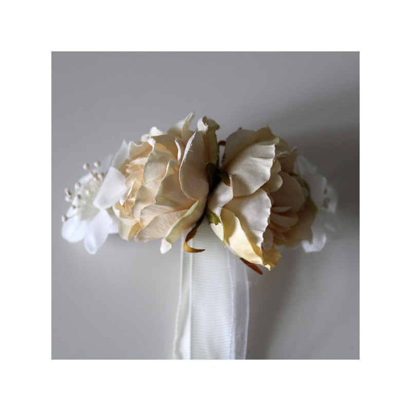 BASICOS: Cinturón con flores beige y marfil para niñas de primera comunión y acompañantes.