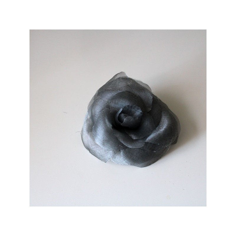 Flor Camelia de seda moldeada artesanalmente, en Color gris.