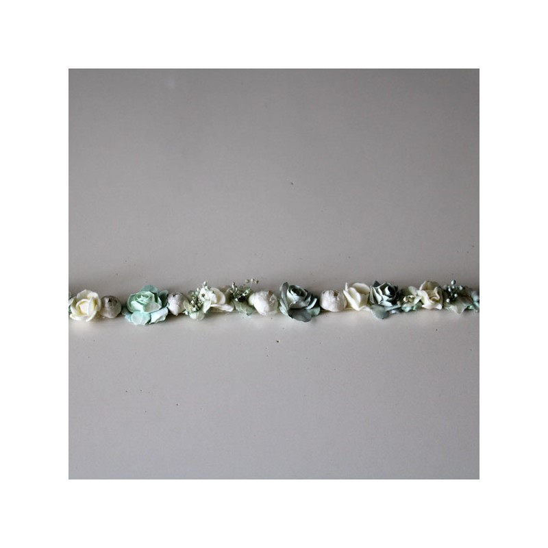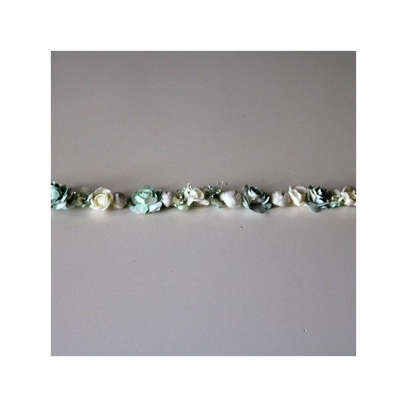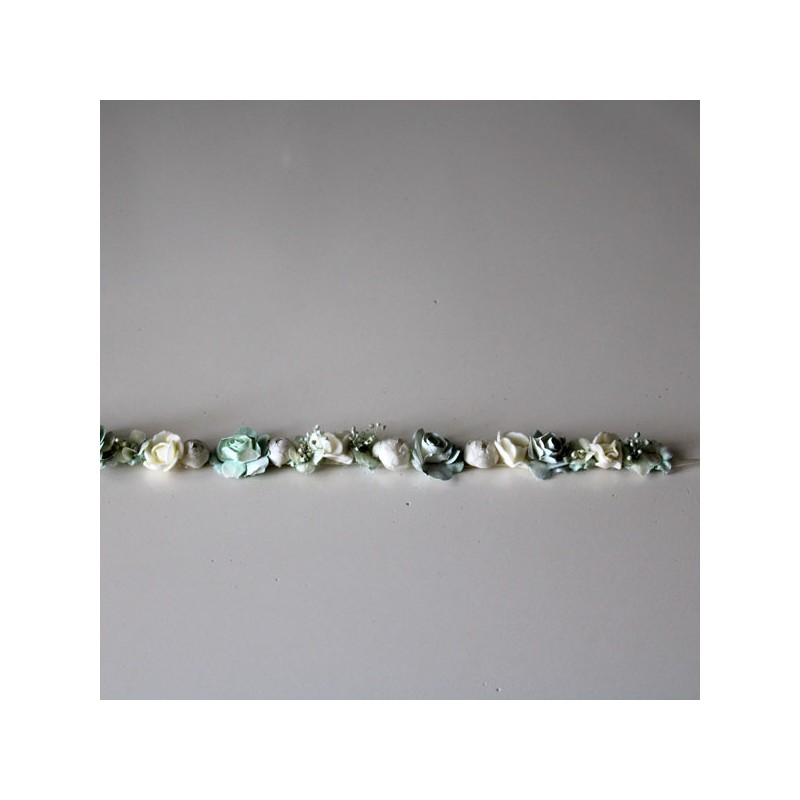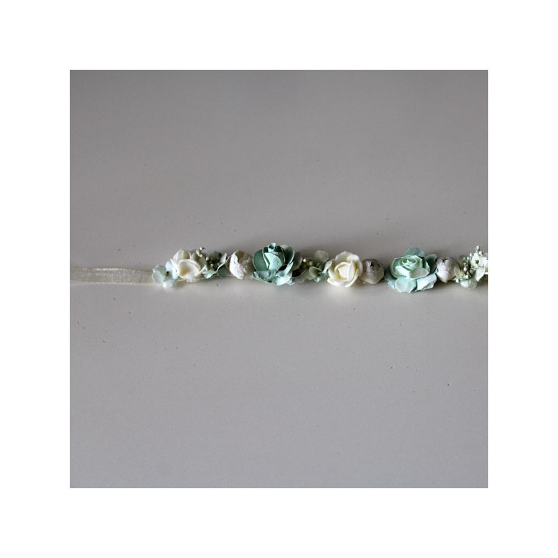 Cinta hippy estrecha para niñas de arras con flores minis en verde agua