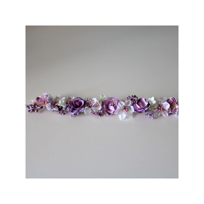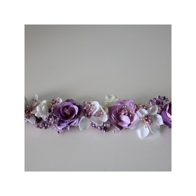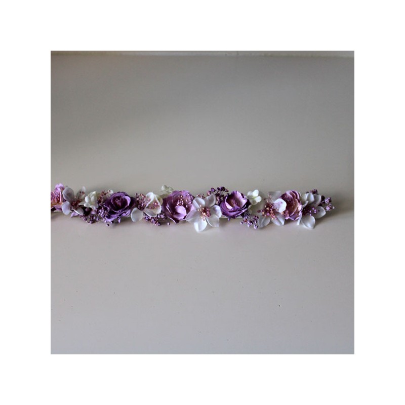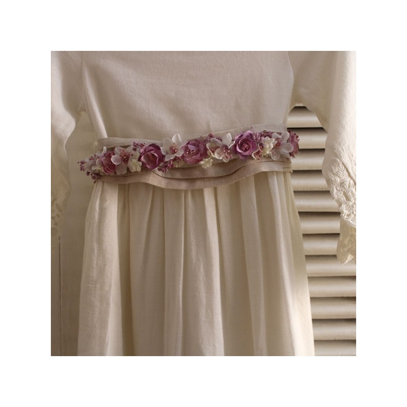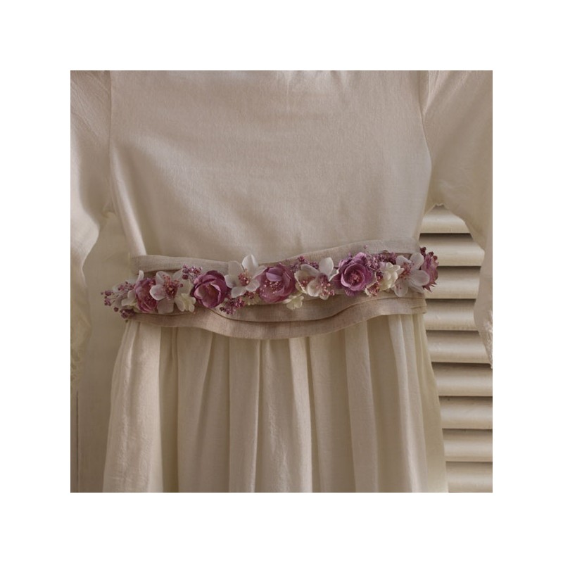 Cinturon para niñas de arras o de primera comunión con flores en tonos malva, beige y blanco.