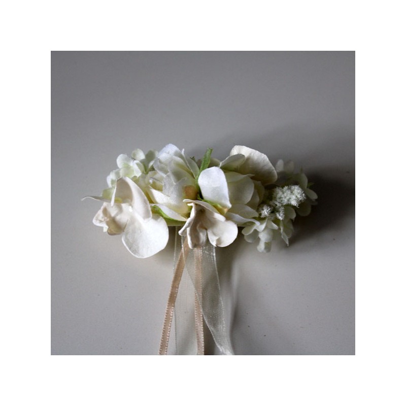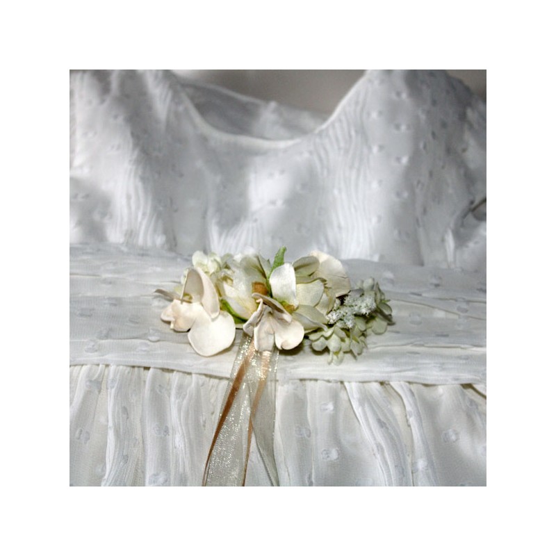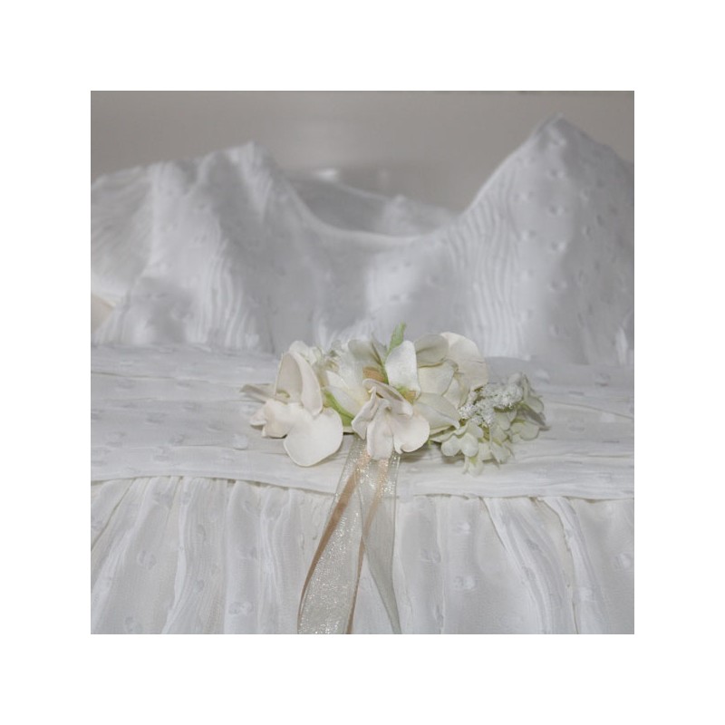 Cinturón pequeño de rosas en marfil y beige para niñas de primera comunión.