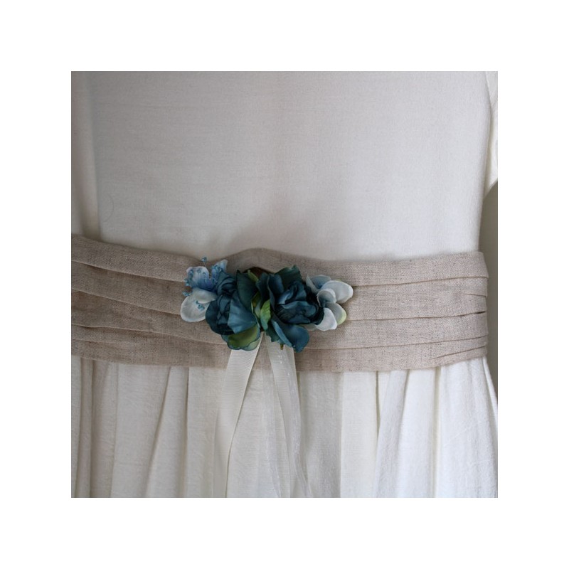 BASICOS: Cinturon pequeño con flores azules para niñas de primera comunión y acompañantes.