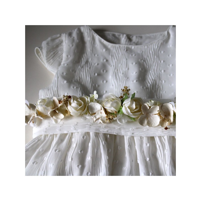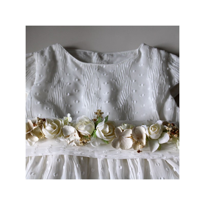 Cinturón para niñas de arras o de primera comunión con flores en tonos marfiles y camel