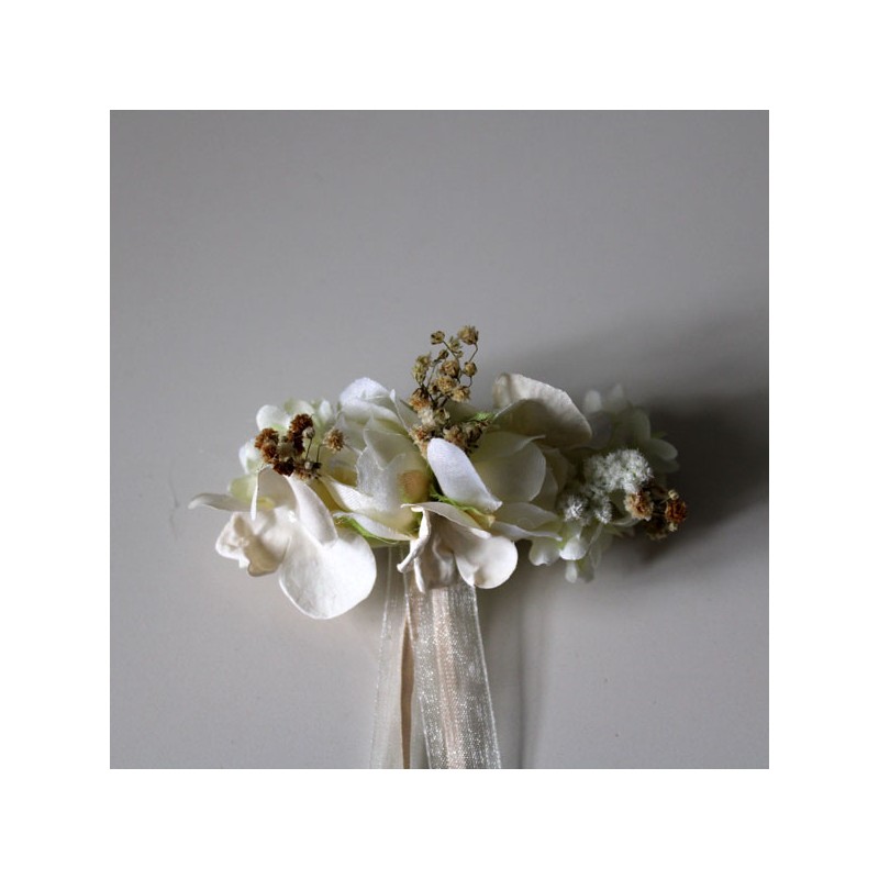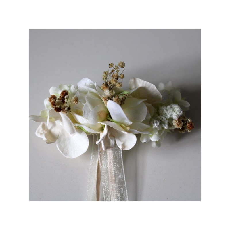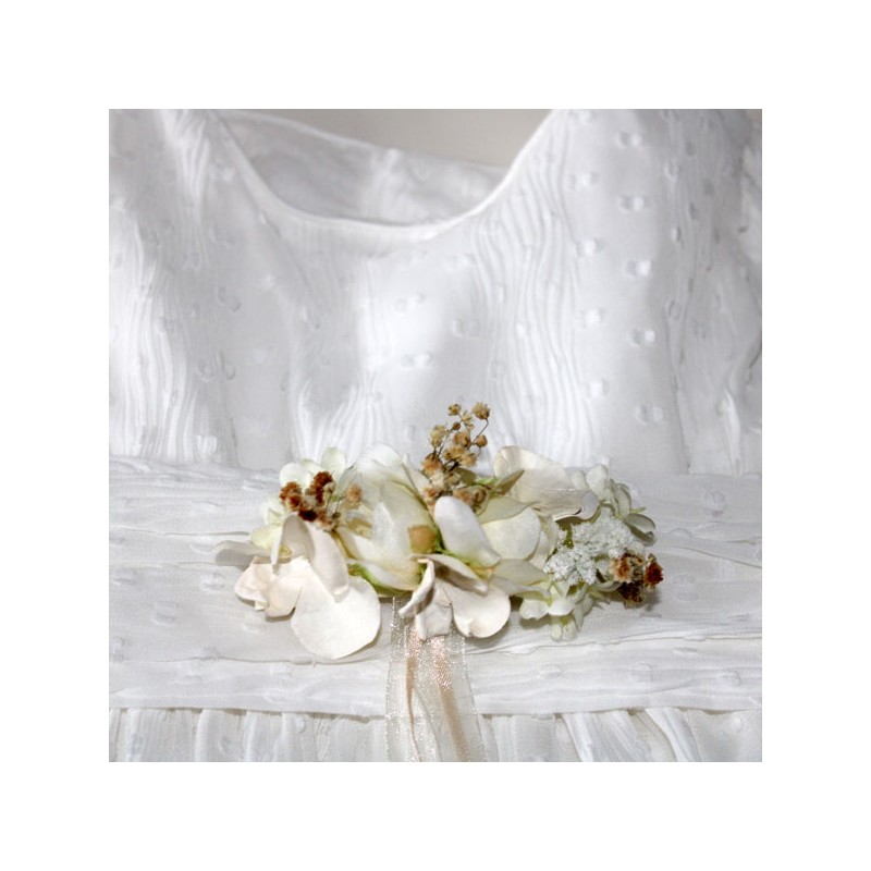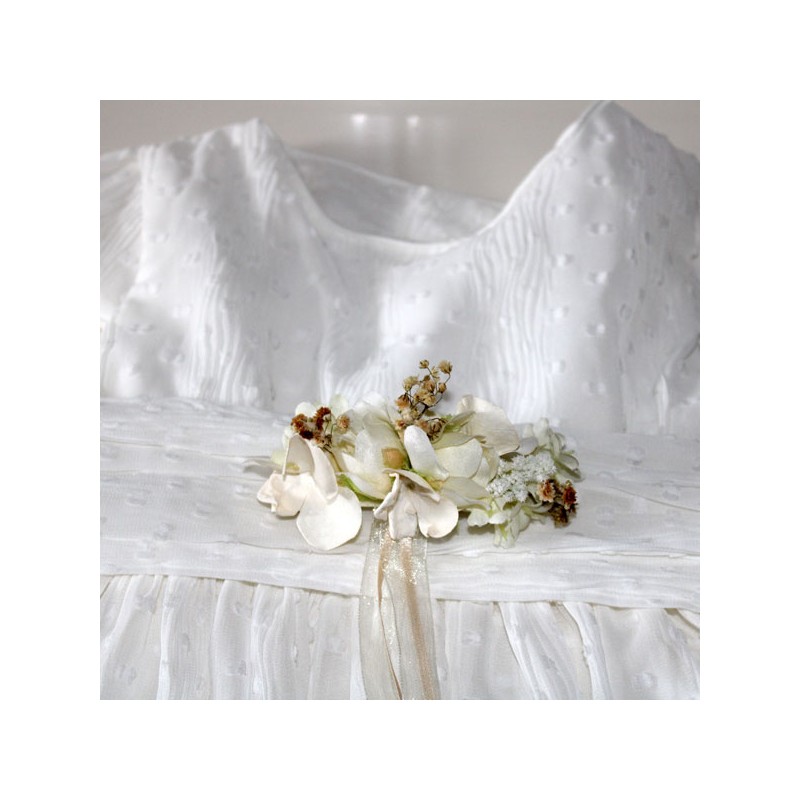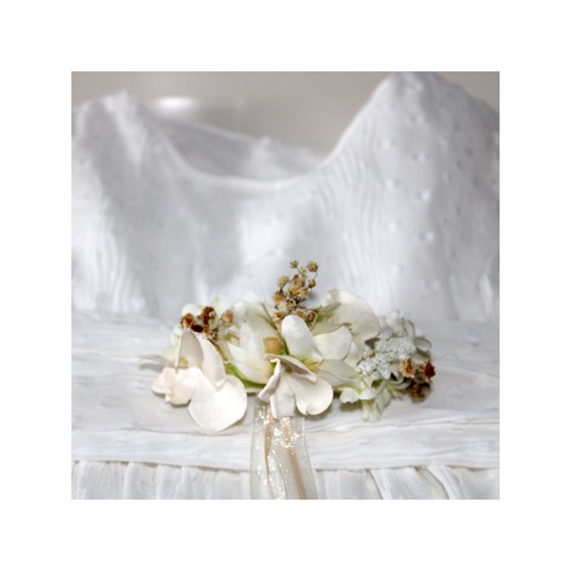 Cinturón pequeño de rosas en tonos beige, tostado y marfil para niña de arras.