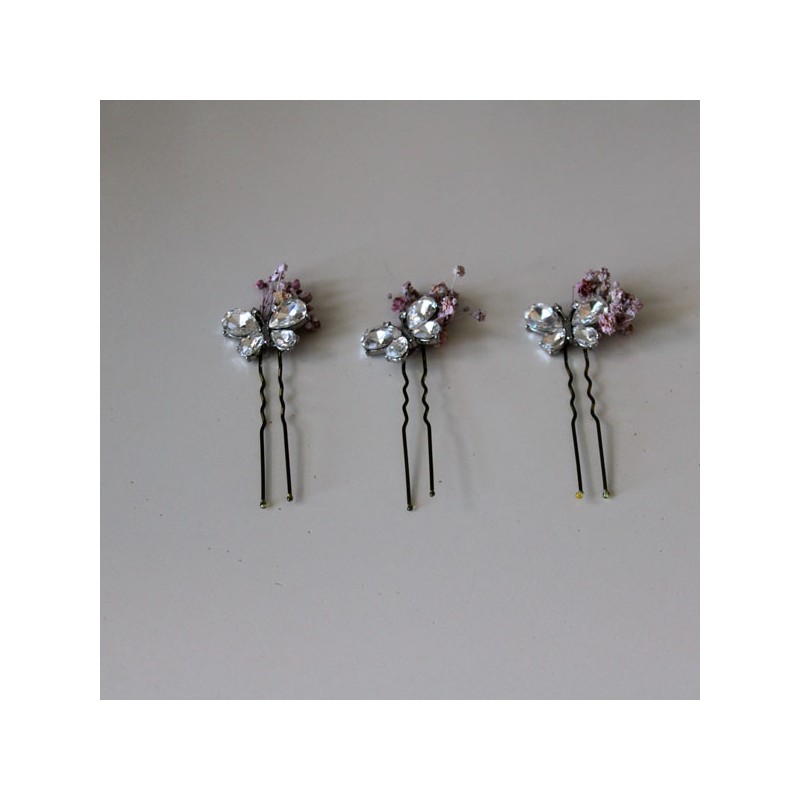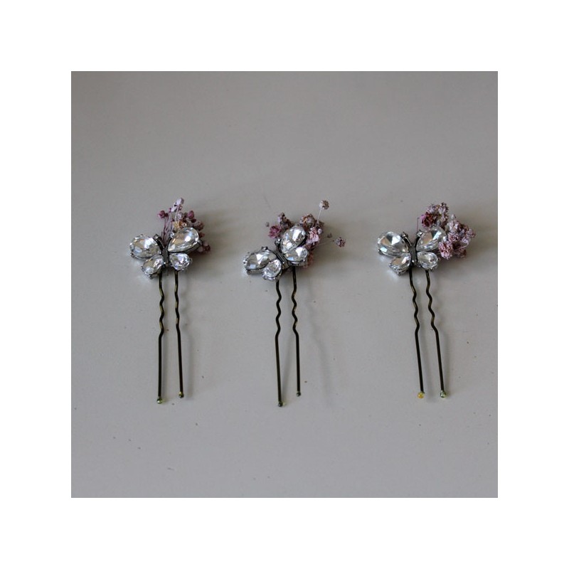 Pack de 3 mariposas de cristal y semillas rosa empolvado para niñas de primera comunión.