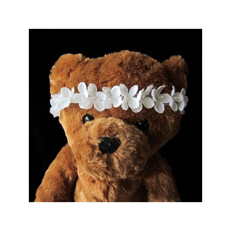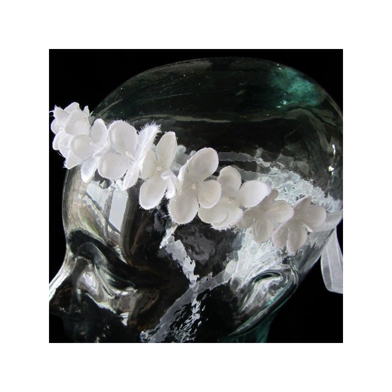 Cinta hippy comunión de hortensia blanca nieve con semilla, para el pelo de niñas de primera comunión.