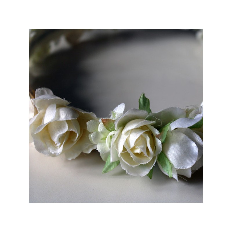 Corona de flores para comunión y arras. Modelo flor popurri en marfil.