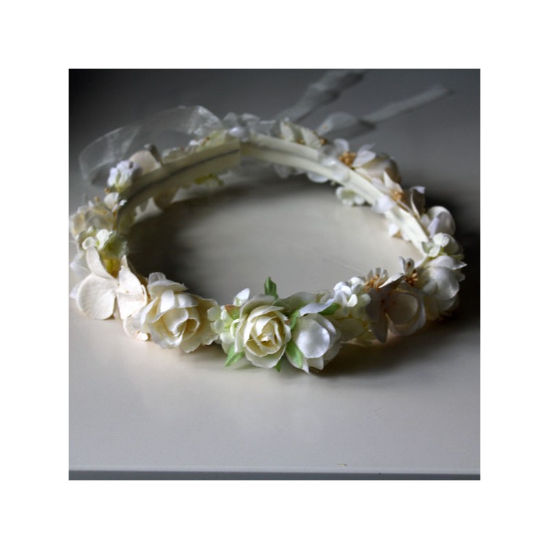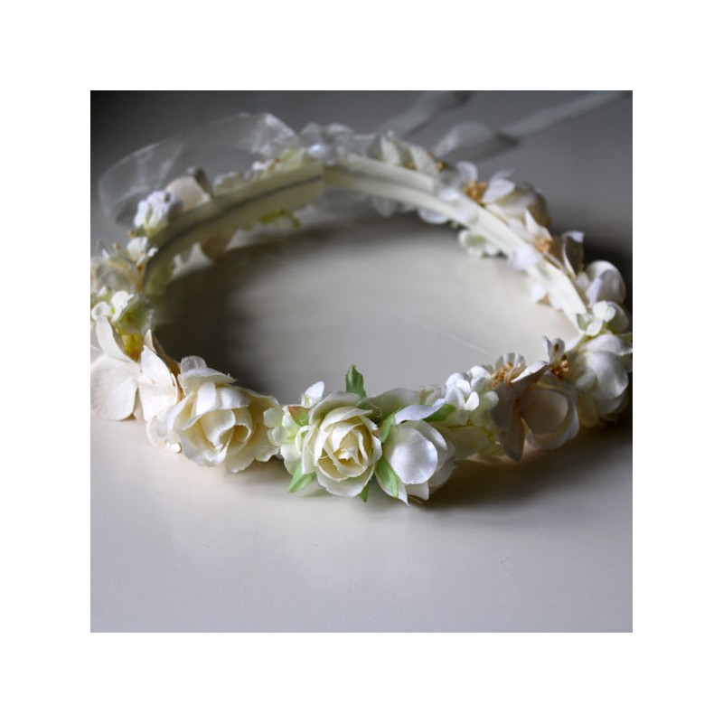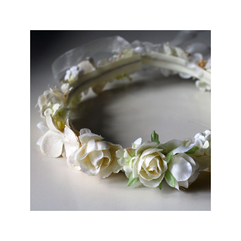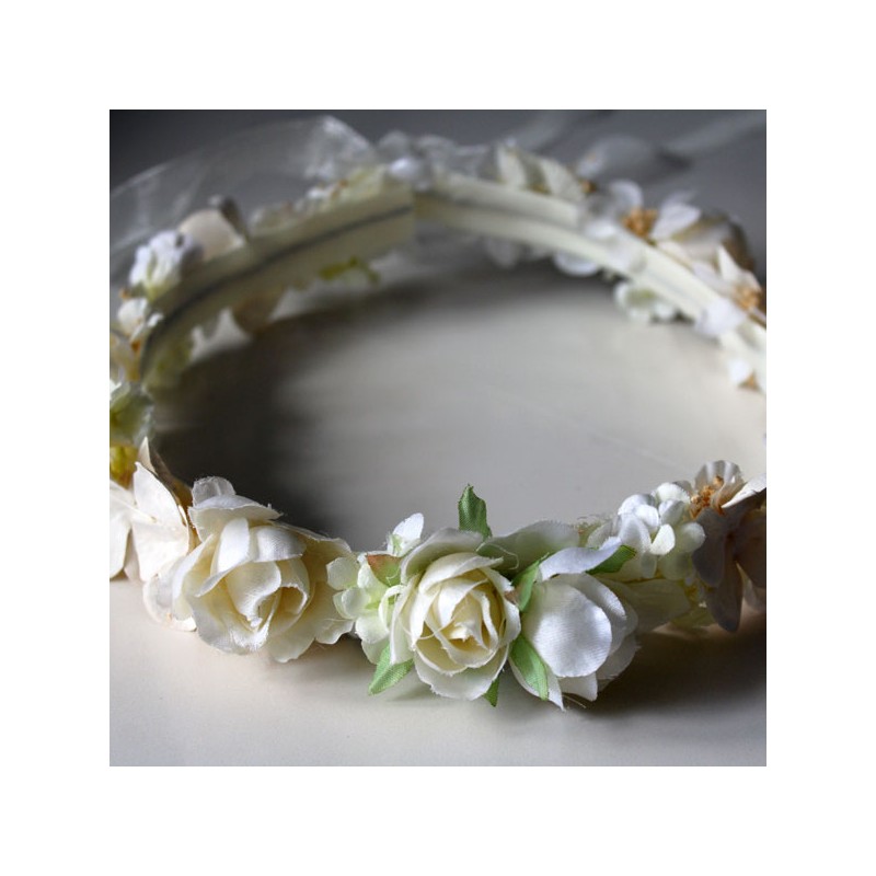 Corona popurri de flores marfil para niñas de primera comunión y para arras