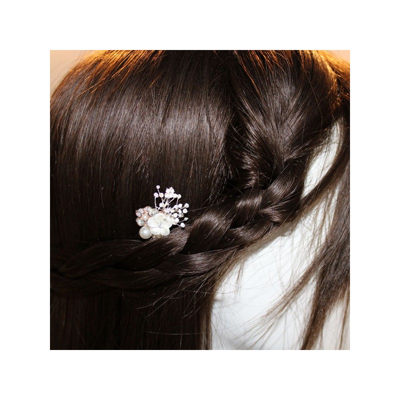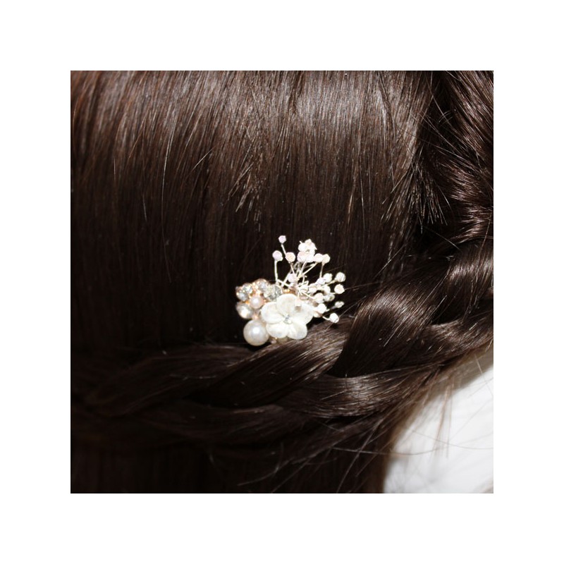 Flor pequeña de primera comunión en color nacar, perla y con semillas.