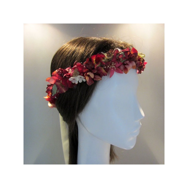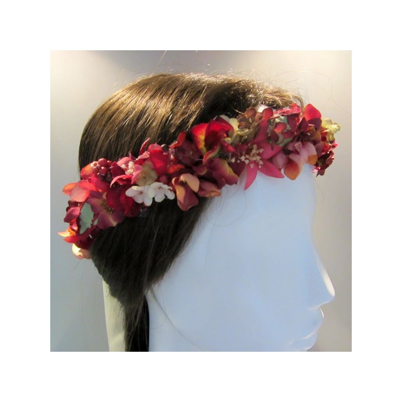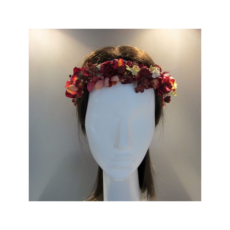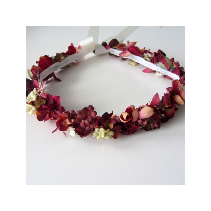Corona de flores para arras Modelo flor popurri en granate y beige.
