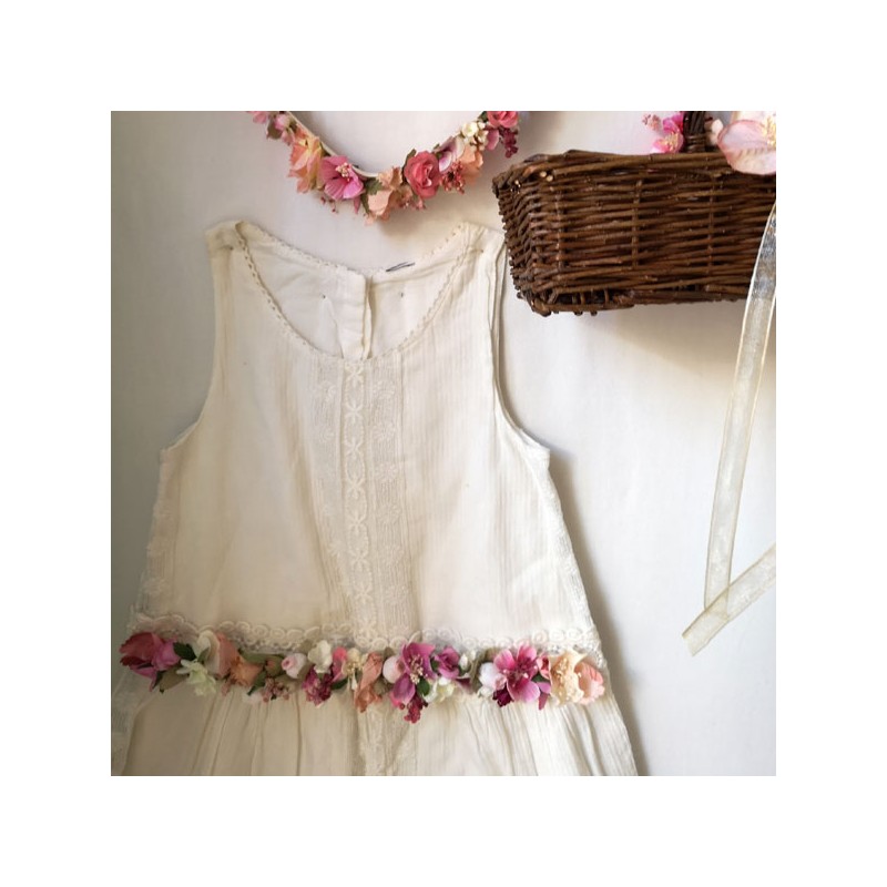 Belt for flower girls or first communion with flowers pink and ivory tones.