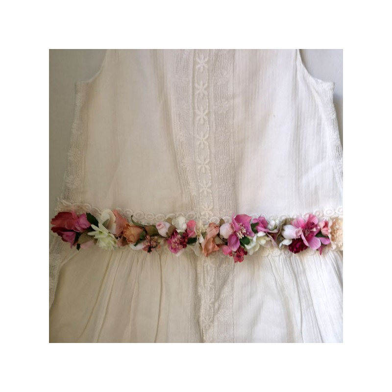 Belt for flower girls or first communion with flowers pink tones.