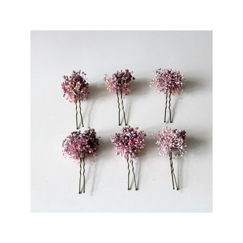 Pack of 6 seed hairpins of pink paniculata for girls of first communion