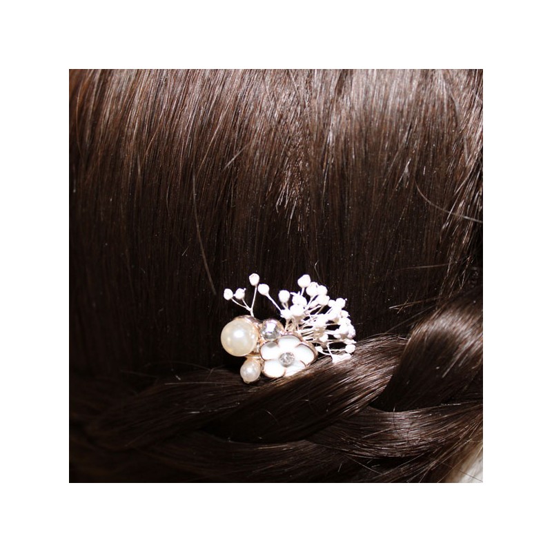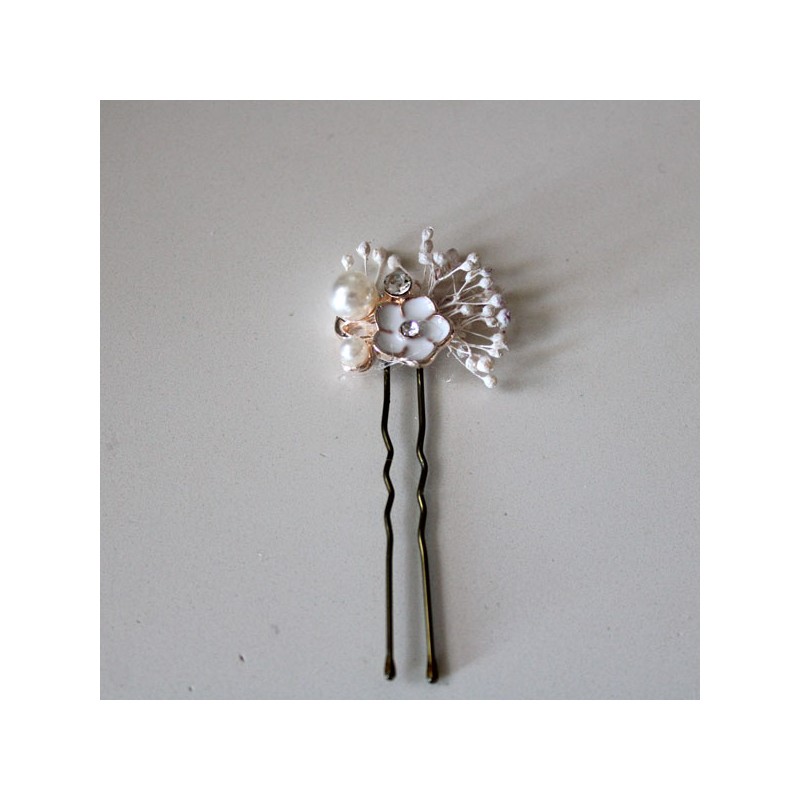 Small first communion flower in white enamel stone color with seeds.