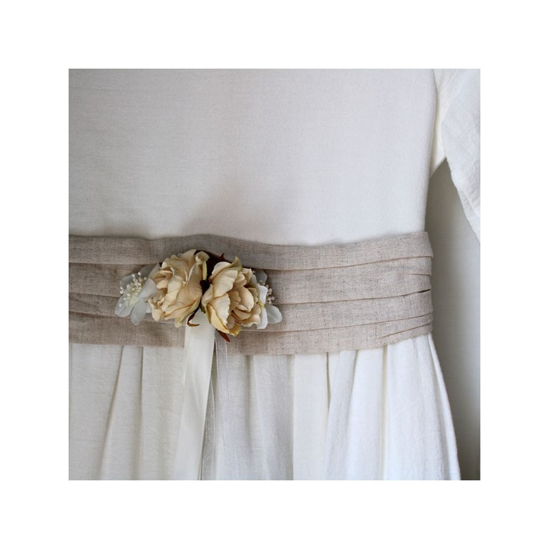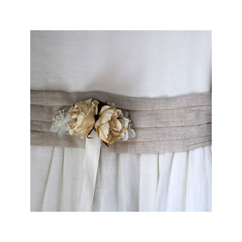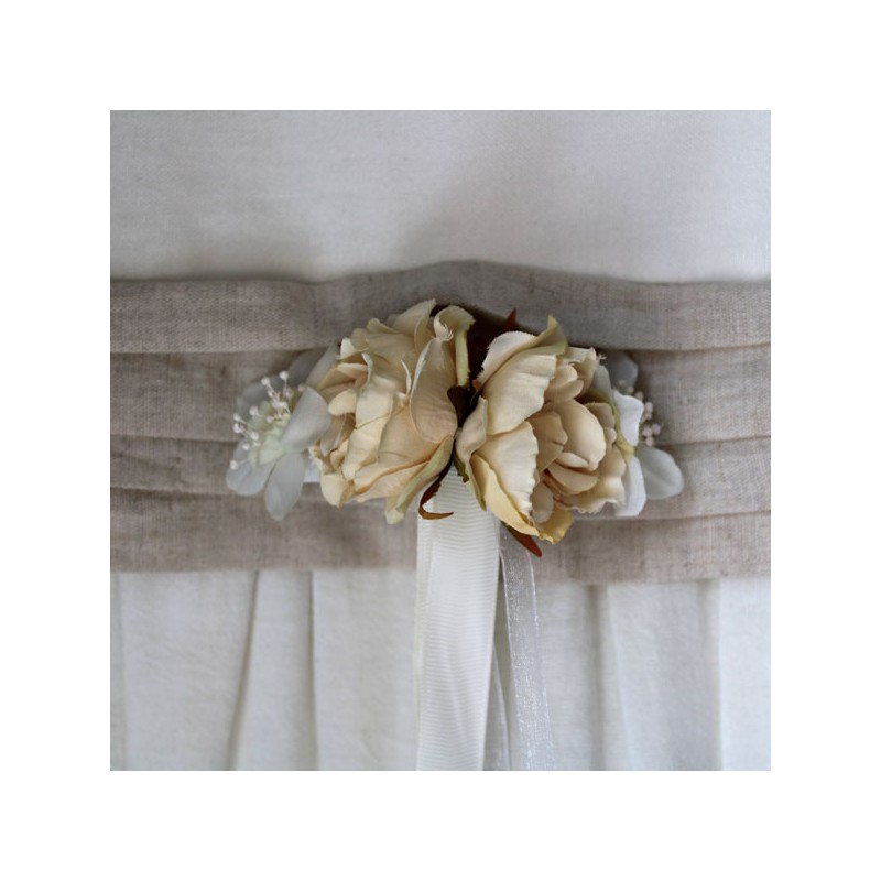 Vanilla and ivory flowers in a small belt for girls of first communion and wedding.