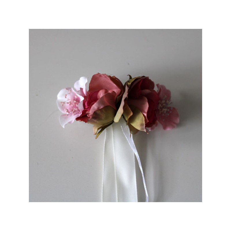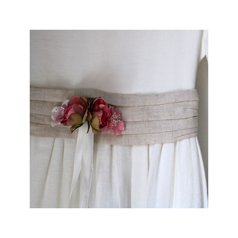 Junto con la cesta y el pasador. Muy aparente y bonito. Los vestidos eran en blanco roto y el contraste con el rosa quedó muy bien.