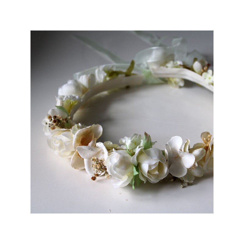 Flower crown in ivory and cream tones for girl flower and first communion.