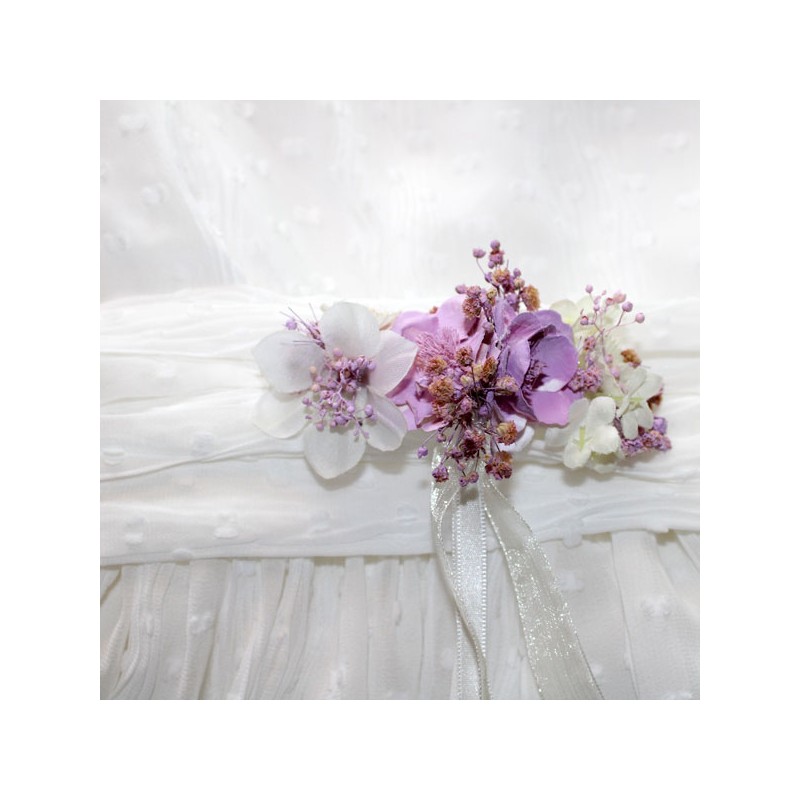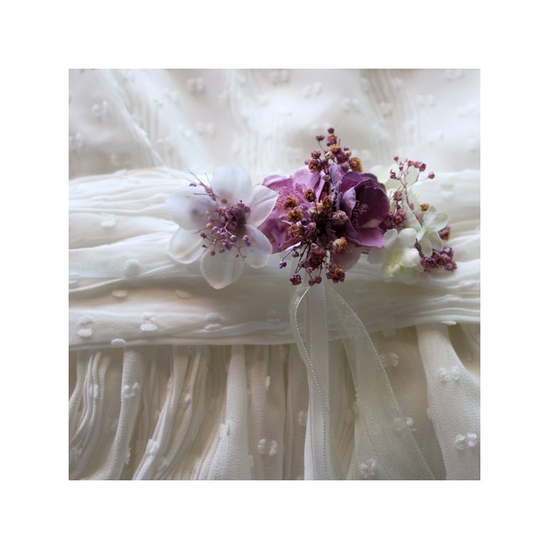Dried flower barrette of various types of powder mauve flowers for flower girl .