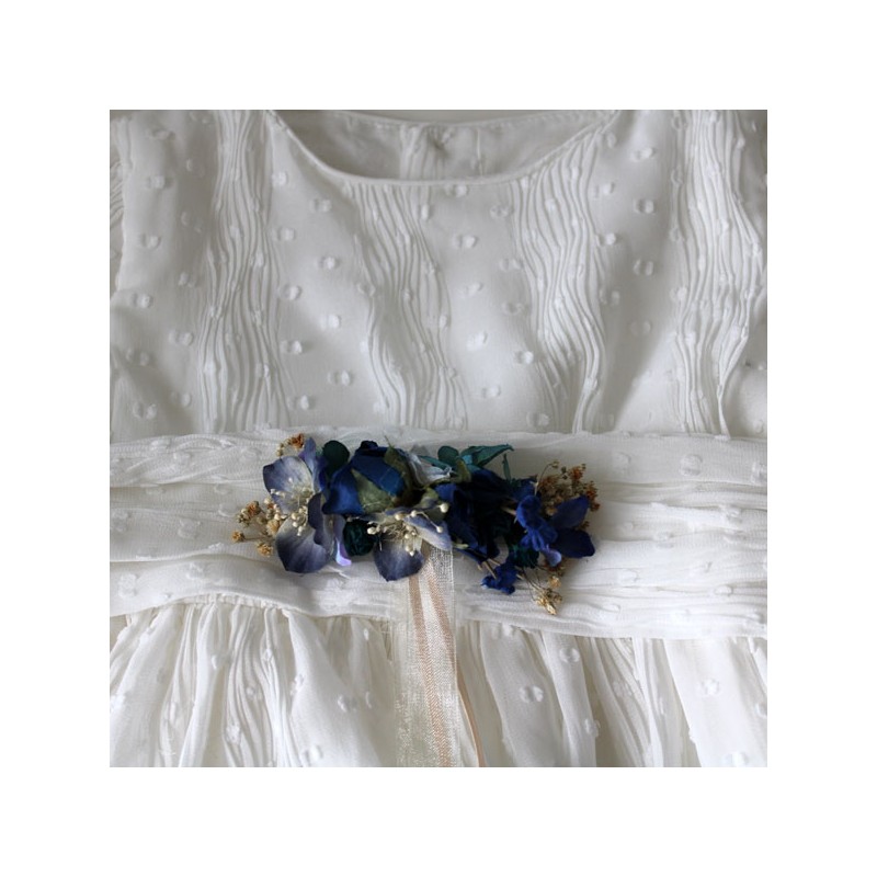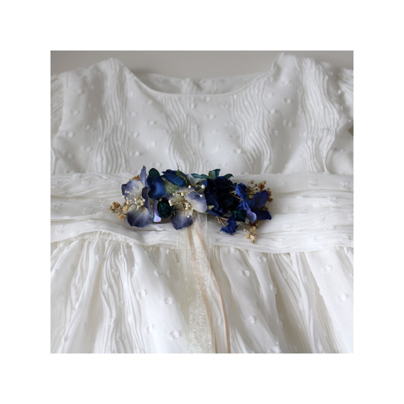 Dried flower belt of various types of dark blue flowers for flower girl .