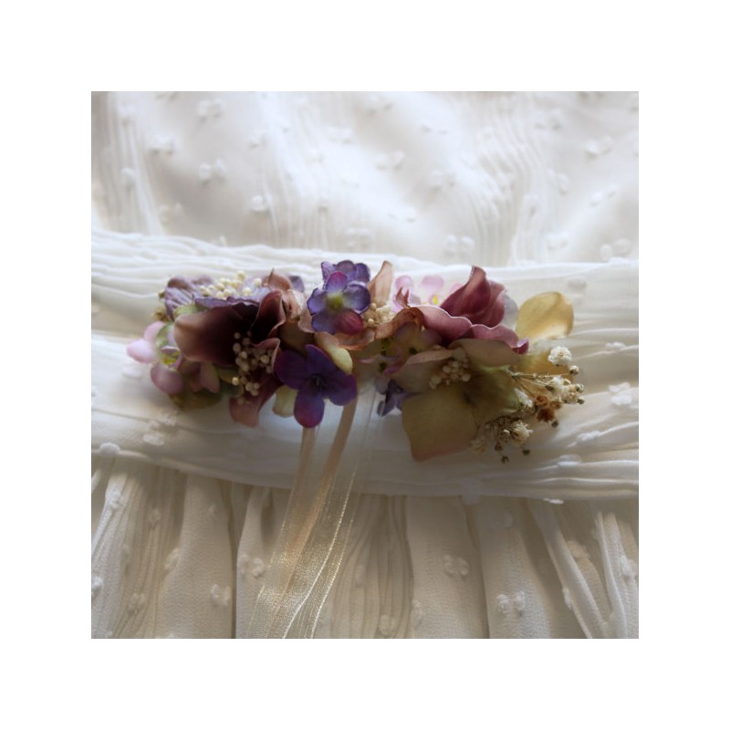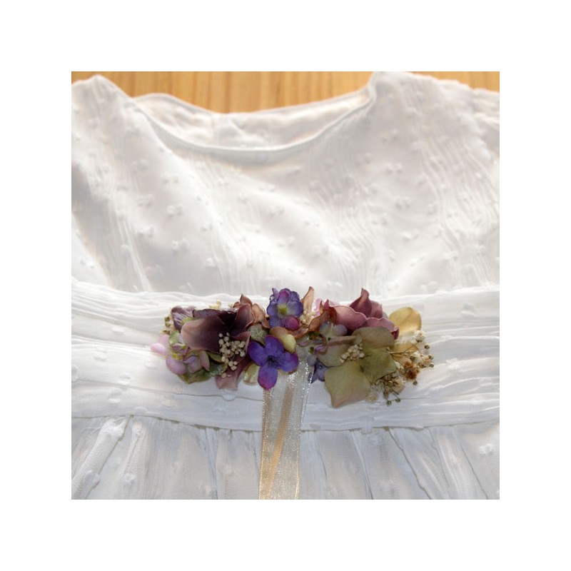 Dried flower belt of various types of mauve flowers for flower girl .