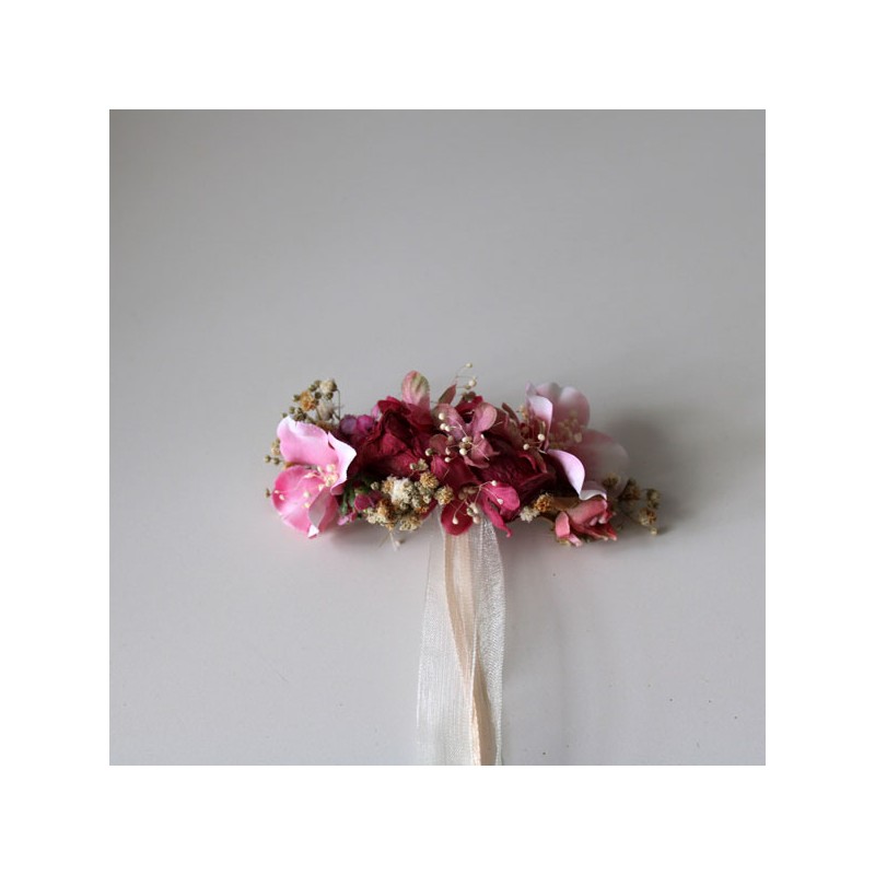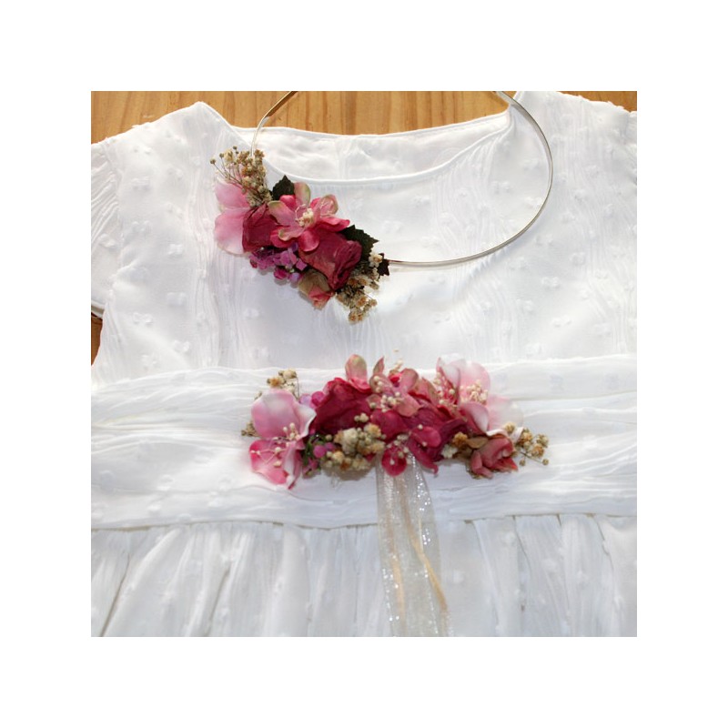 Dried flower Belt of various types of flowers in pink tones for flower girl .