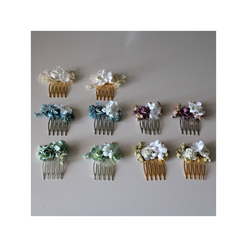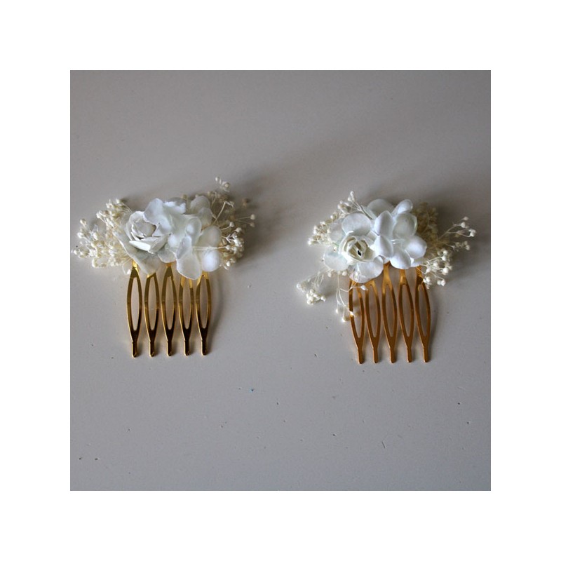 Two small comb of various types of flowers in white and vanilla n for girl's first communion and girlfower.