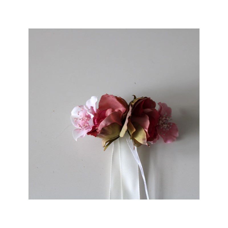 Pink flowers in a small barrette for girls of first communion and wedding.