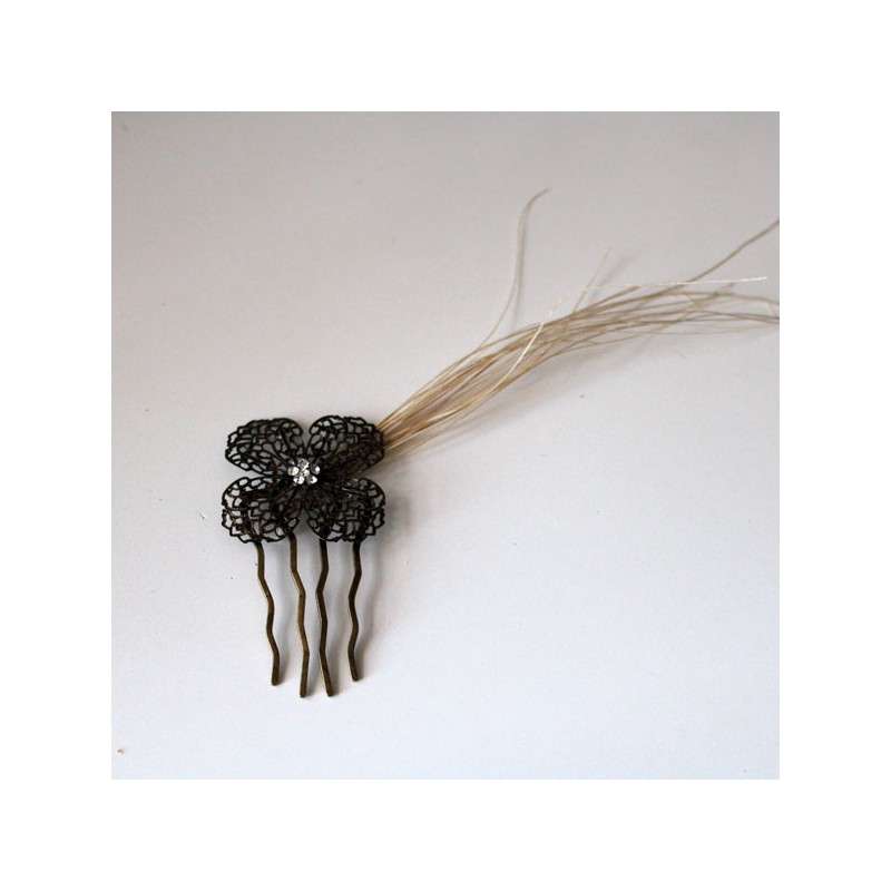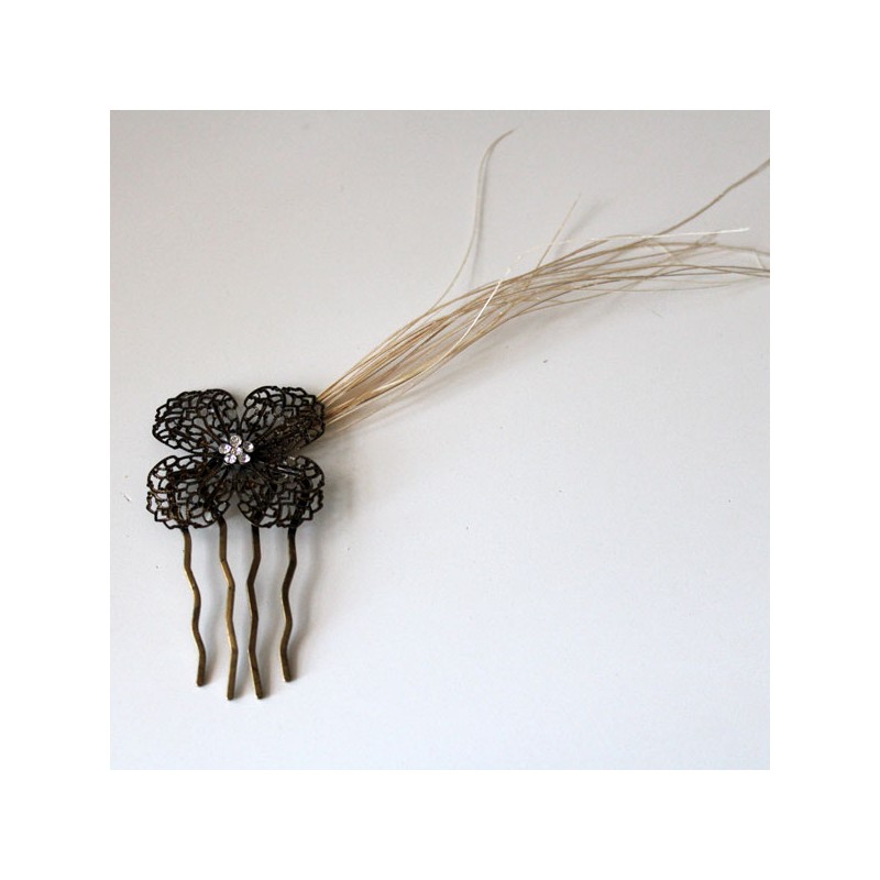 Antique gold metal flower mounted on a hair comb for your events or parties.