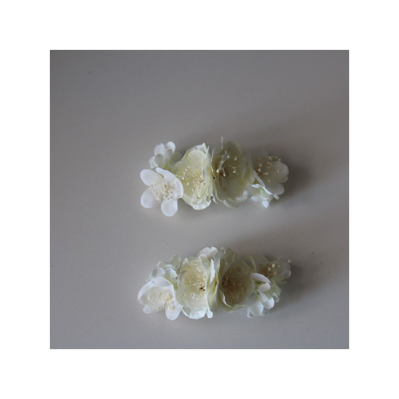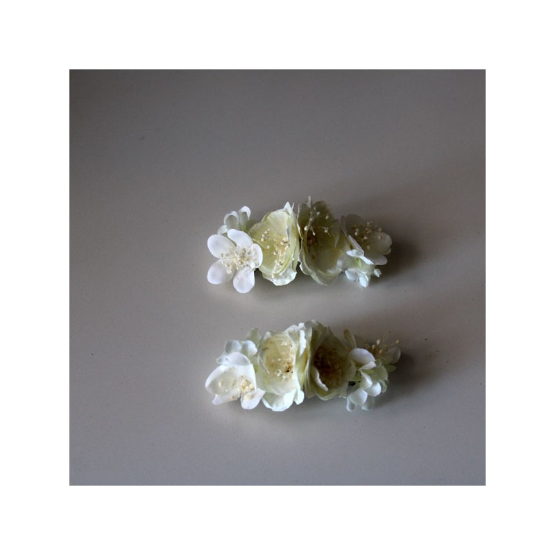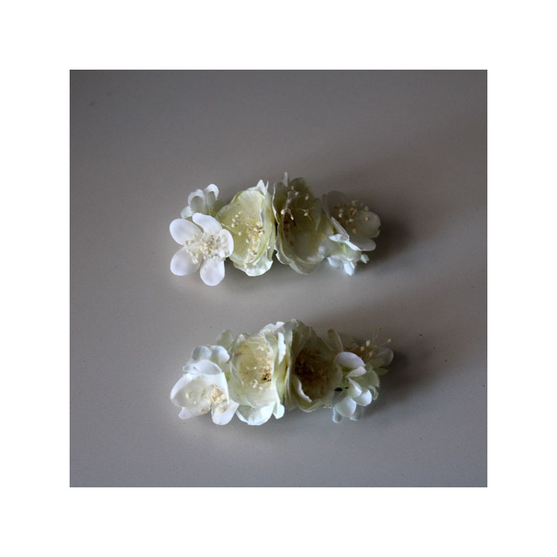 Dos pasadores medianos de diversos tipos de flores en marfil para niña de primera comunión.