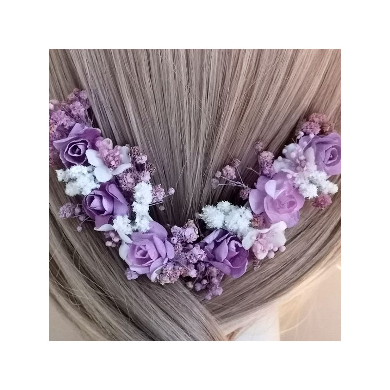 Perfectos para hacer un recogido a cada lado. Podemos añadir cintas si lo deseas. Solamente tienes que ponerlo en observaciones.Medidas: Flor 6.5 cm de largo y 2cm de ancho aproximadamente.