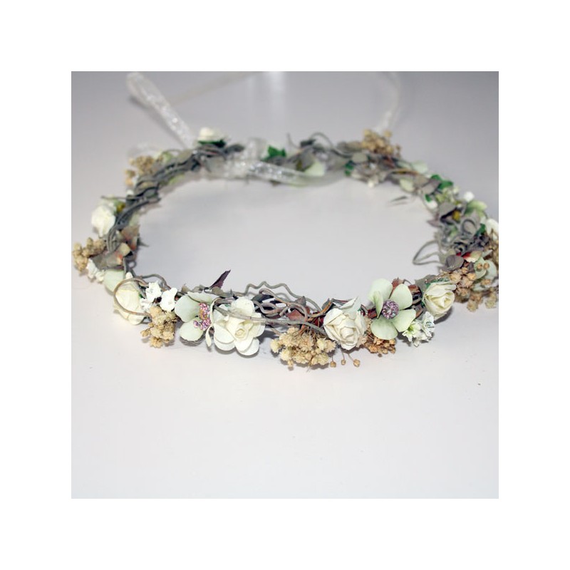 Tiene una cinta de organza a cada lado para poder ajustarla a la medida de la cabeza.